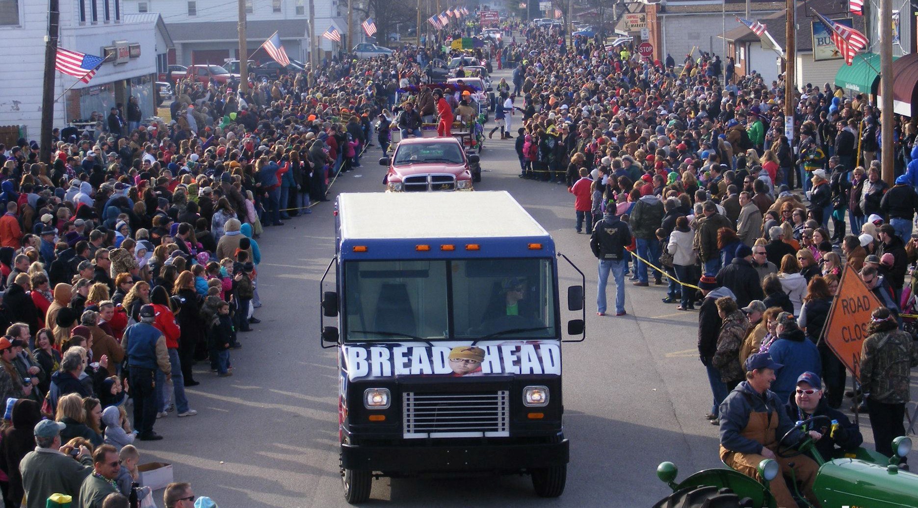 The Wordi Gras begins at 10 a.m. and includes a parade which travels down Wall Street, starting at Park Street and Drummond Street. Any float or vehicle can enter the parade - just get in line! Entry is free! Watch as a long procession of floats, tractors, decorated trucks, cars, and marchers take part in the Mardi Gras bash of rural America in purple, green, and gold!